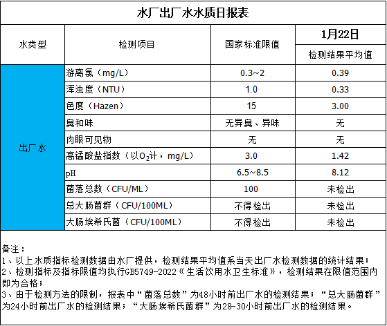 水廠出廠水水質(zhì)日?qǐng)?bào)表(2025-1-22)